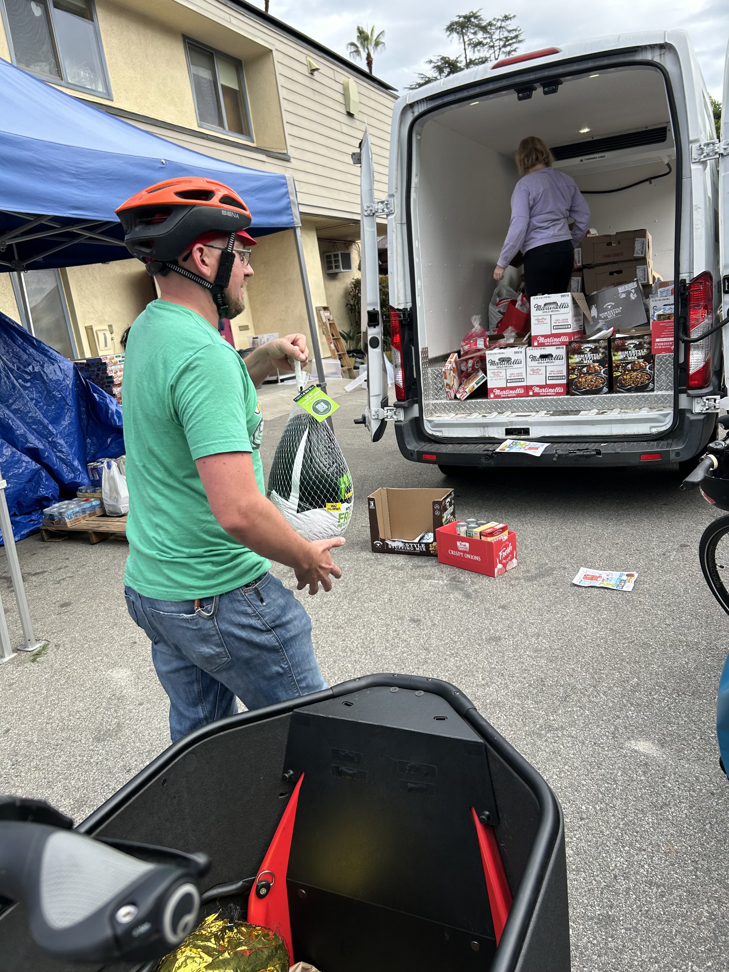 Pasadena volunteers delivered turkeys and other Thanksgiving staples to Friends In Deed by bike