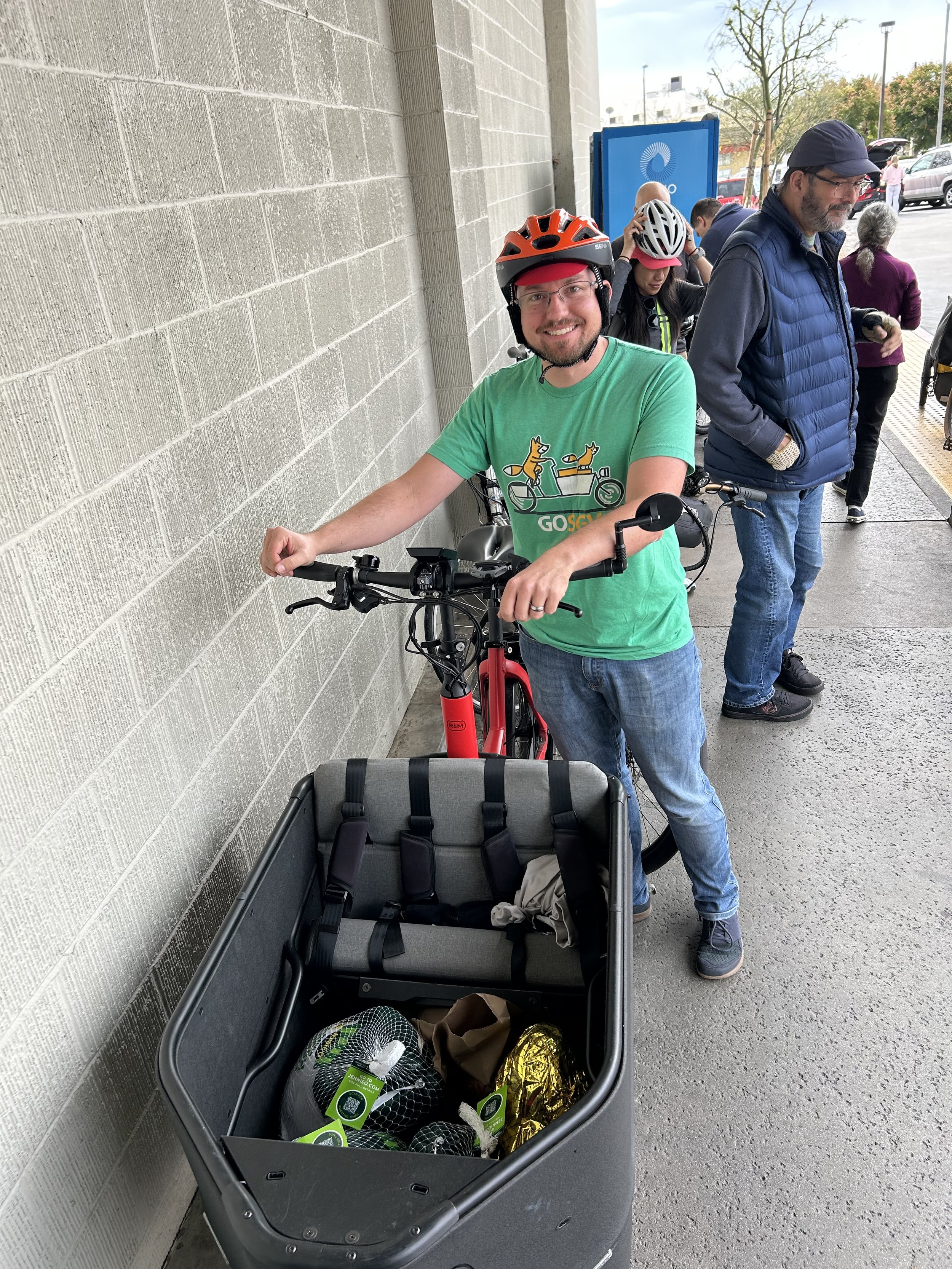We heard they needed some turkeys for a special Thanksgiving food distribution. Our volunteers grabbed their cargo bikes and bike trailers, and we met for a group ride to deliver food. Volunteers biked to a local grocery store, loaded up the bikes with around ten turkeys plus other foods, and biked them to Friends In Deed the weekend before Thanksgiving.
